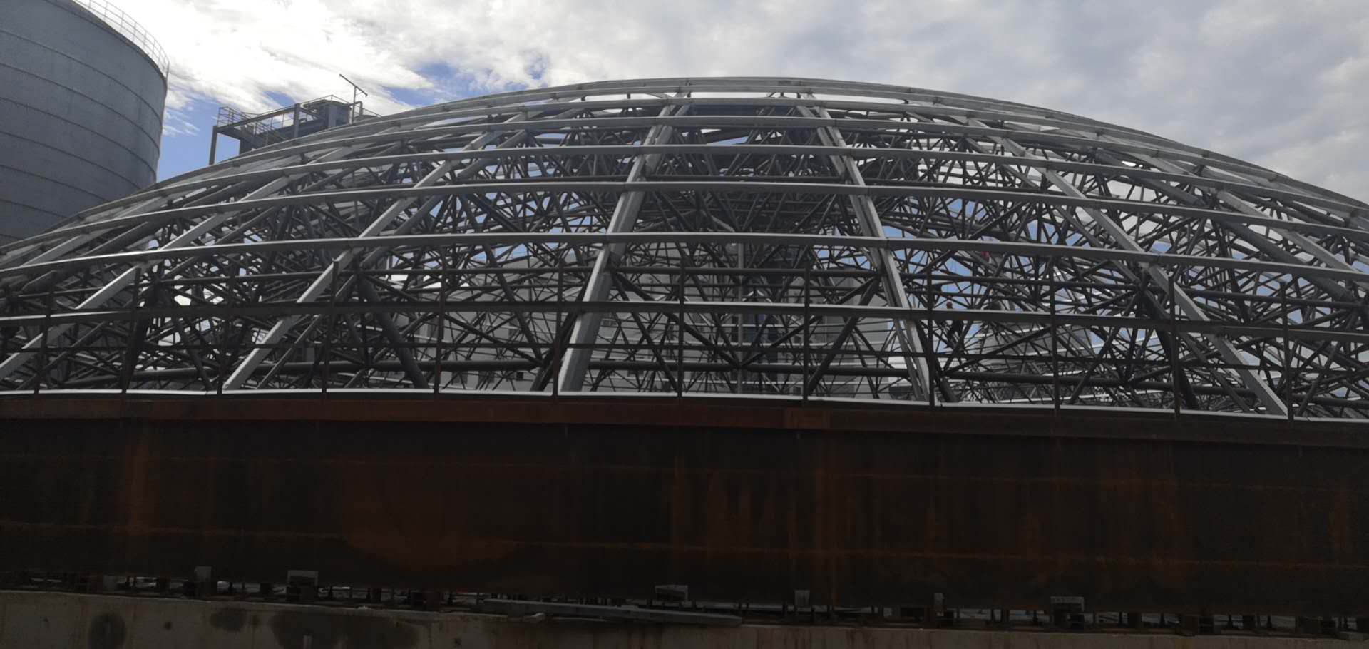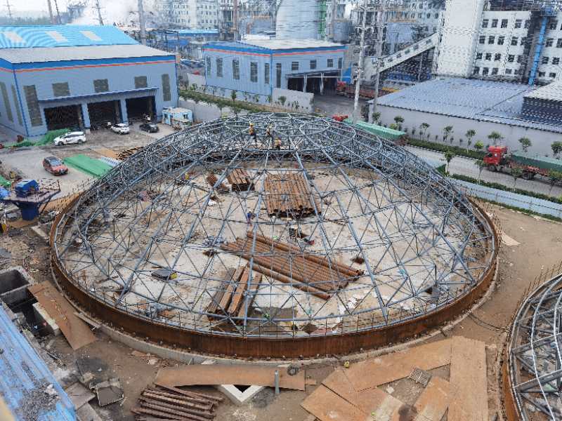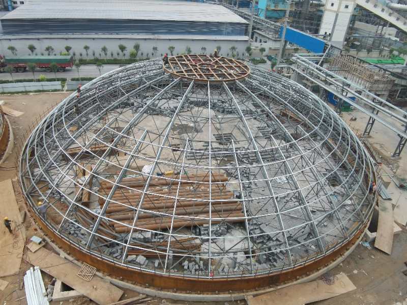 我公司承建的聊城直徑42米蘭炭鋼板倉2021投入使用。